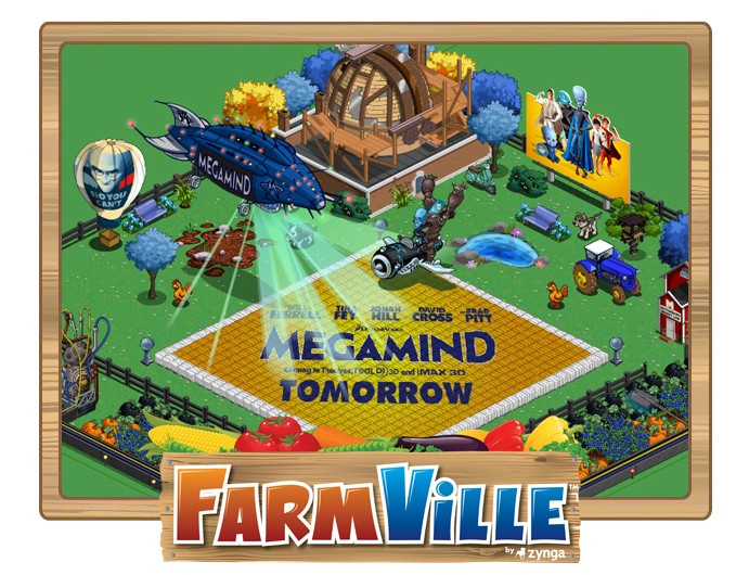 For the first time, a studio will promote its newest film in a social networking game when “Megamind” comes to the insanely popular “Farmville”.