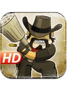 been tamed on iDevices yet and, unfortunately, Cowboy Guns HD isn’t quite up to the task. The story is generic western, with a nameless gunslinger (called “The Kid”) dispatched to help take down The Crimson Jackets, a band of ruffians terrorizing an area. The game has plenty of guns, outfits, and armor, but to get them, you’ll need to collect stars on various missions. Problem is: Those missions are pretty much the same. Walk in, kill all the bandits, hunt for stars, then repeat. It gets monotonous, and buggy controls don’t help matters. The game’s top-down view is also limiting. In the end, it’s a game whose aim is just a little too far off the mark.